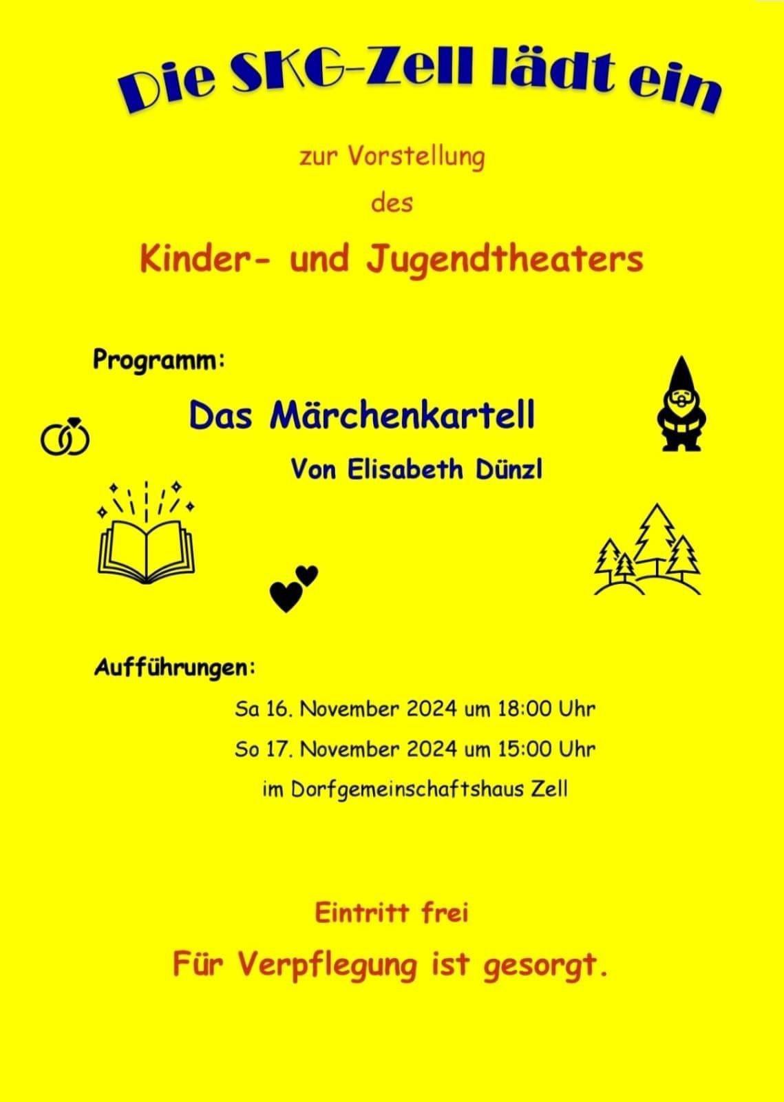 Am 16.11. um 18 Uhr und am 17.11. um 15 Uhr beginnen die Vorstellungen mit dem Stück "Das Märchenkartell" im DGH Zell.